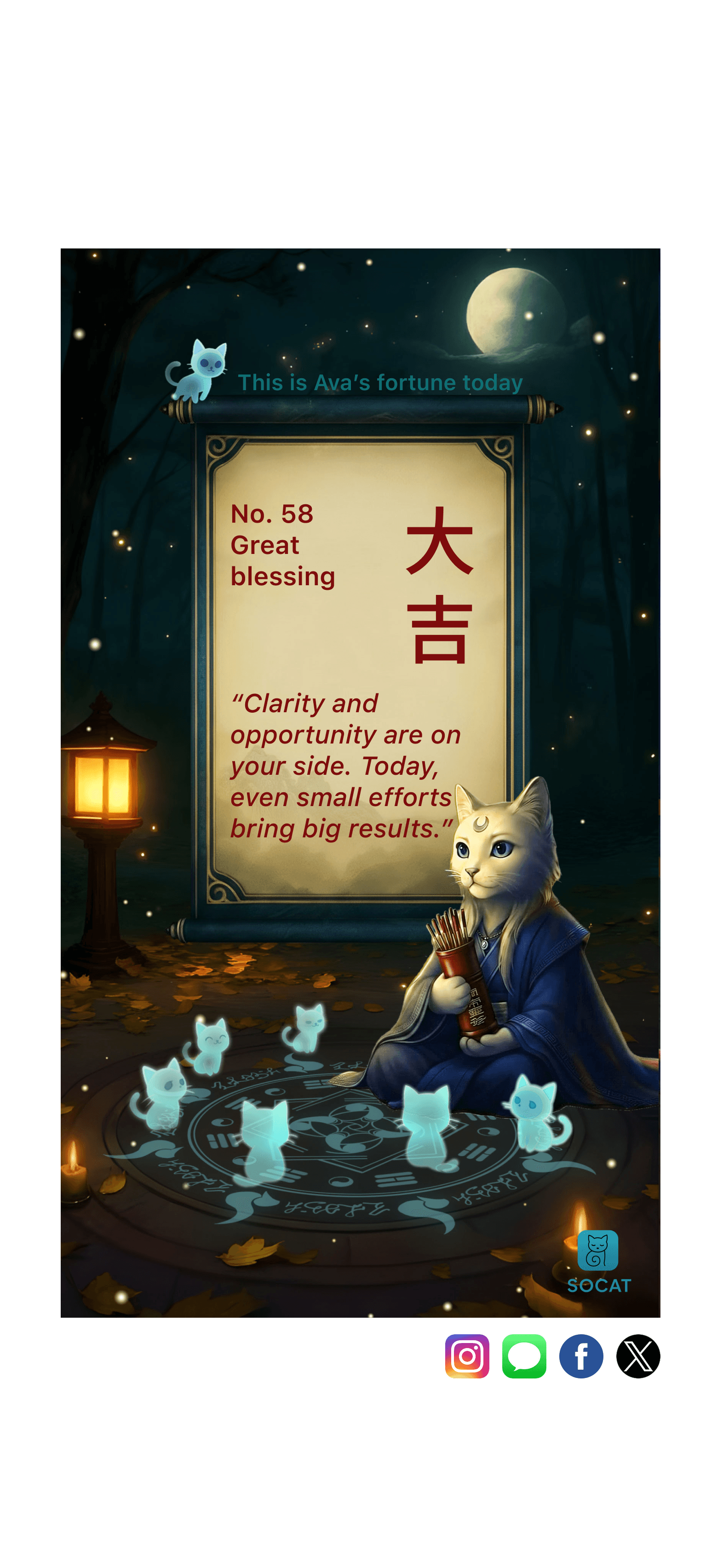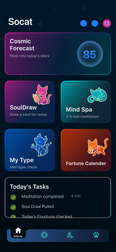 Socat is a fortune-telling app that combines storytelling, AI companions, and game mechanics to design moments of daily reflection, inspiration, and fun.